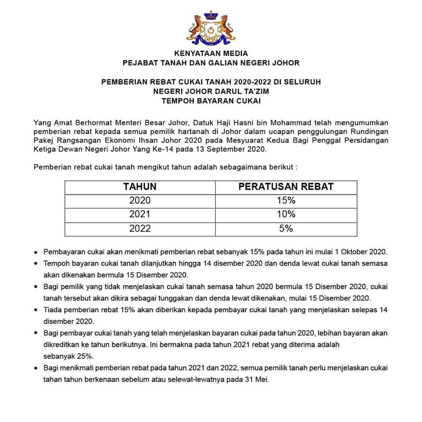 Pejabat Tanah Dan Galian Johor On Twitter Rebat Cukai Tanah Pentadbiran Tanah Johor Bagi Tahun 2020 Dan 2021 Https T Co Xyy0hbfref Twitter